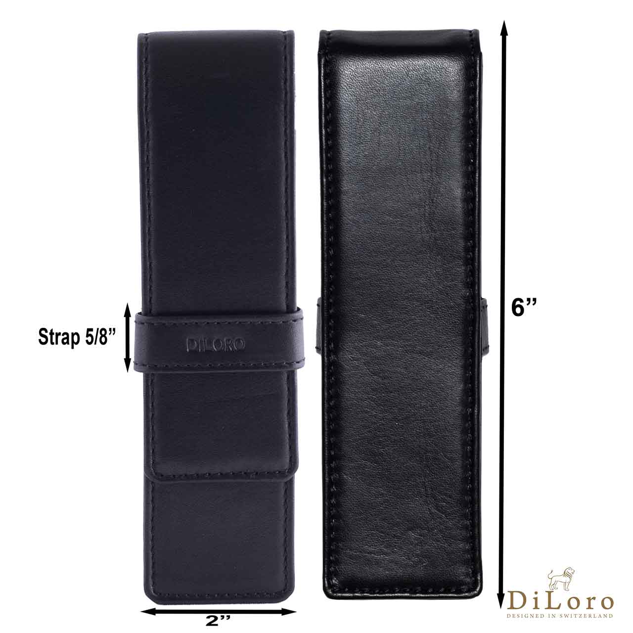 DiLoro Leather Double Pen and Pencil Holder: Top-Quality, Full-Grain Napa Leather Pen Case for Travel
